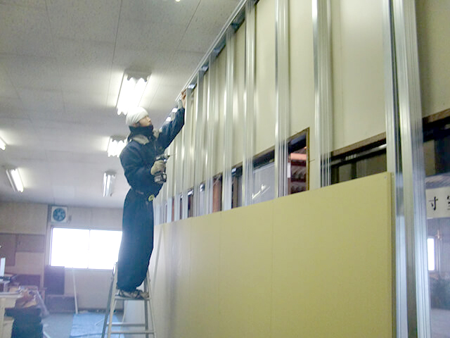間仕切設置工事の様子